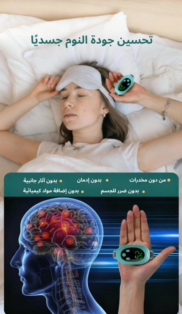 ترسل الجهاز نبضات خفيفة تساعد على تهدئة نشاط الدماغ وتقليل الأرق دون أدوية أو آثار جانبية.